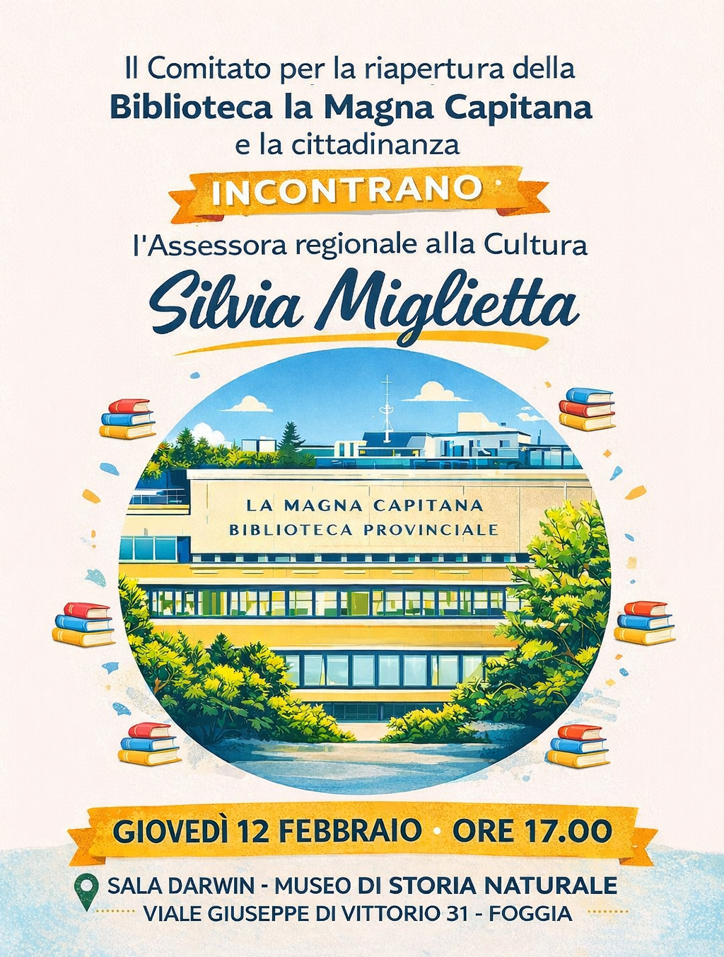 Biblioteca “la Magna Capitana”: lettera aperta del Comitato alla neo Assessora regionale alla Cultura e alle Biblioteche Silvia Miglietta e agli altri attori istituzionali.